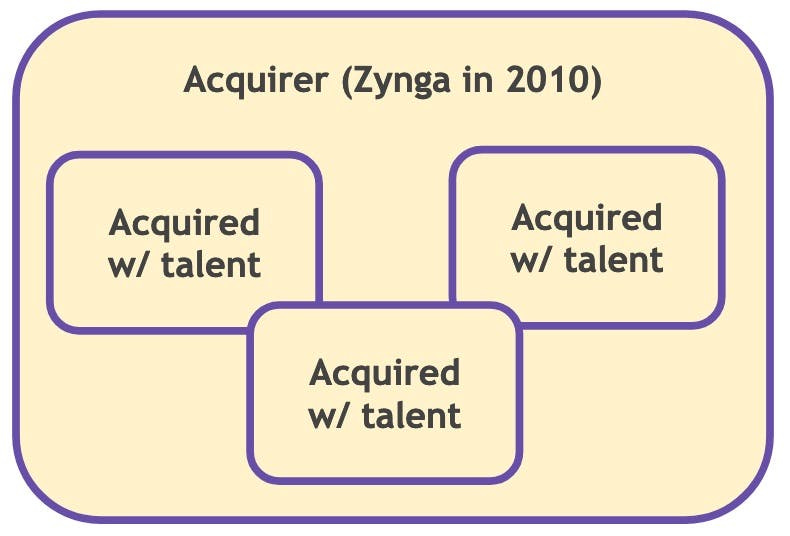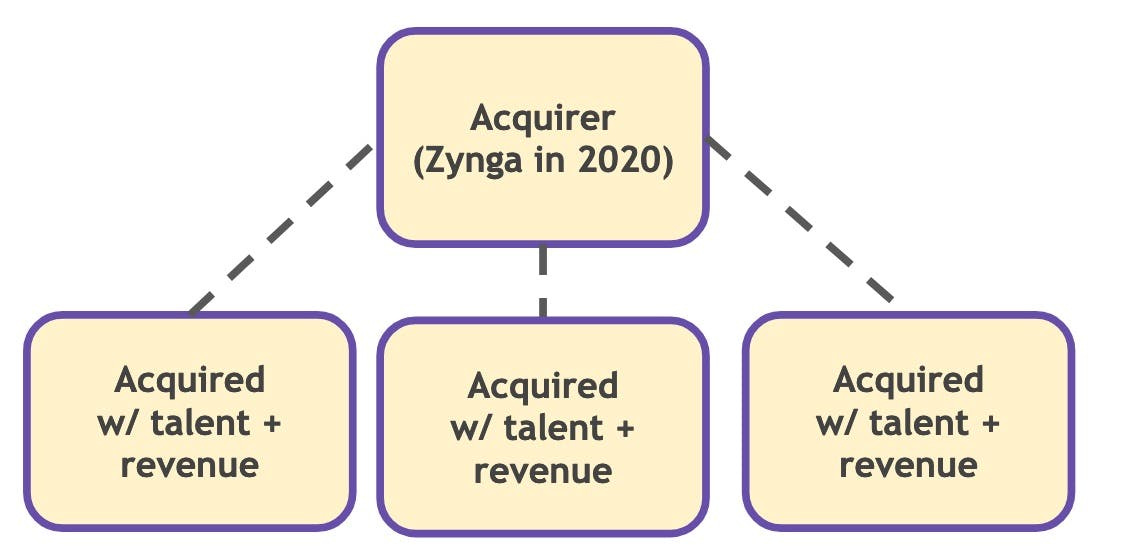 Zynga started acquiring companies over ten years ago. Their hit gaming IP Farmville was originally an acquired game, from way back in 2009. Along the way, they picked up the best practices.